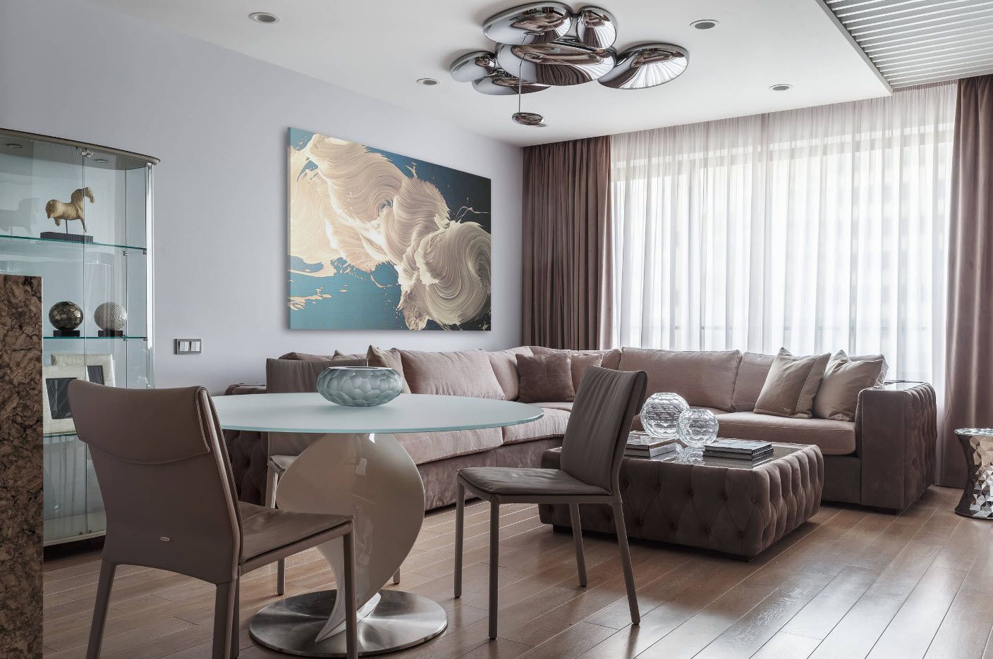 Появится ощущение, что все предметы как бы растворяются в пространстве. Причем независимо от их габаритов и форм. Оттенок сочетает нейтральность, элегантность, практичность и изысканность. Способен одновременно создать роскошь и спокойствие. Благодаря чему человек сможет эпатировать окружающих или скрыться в своей квартире.